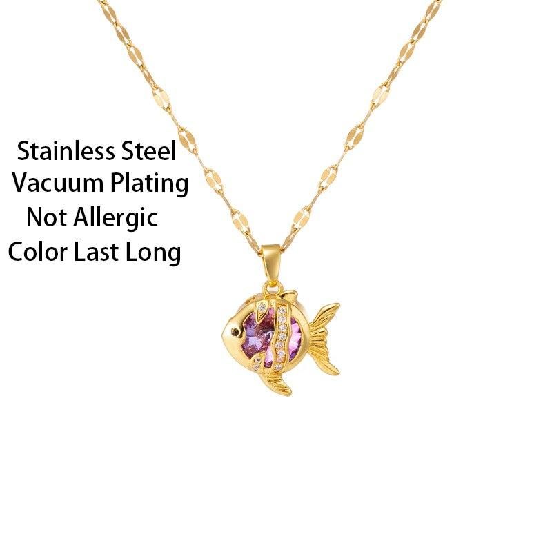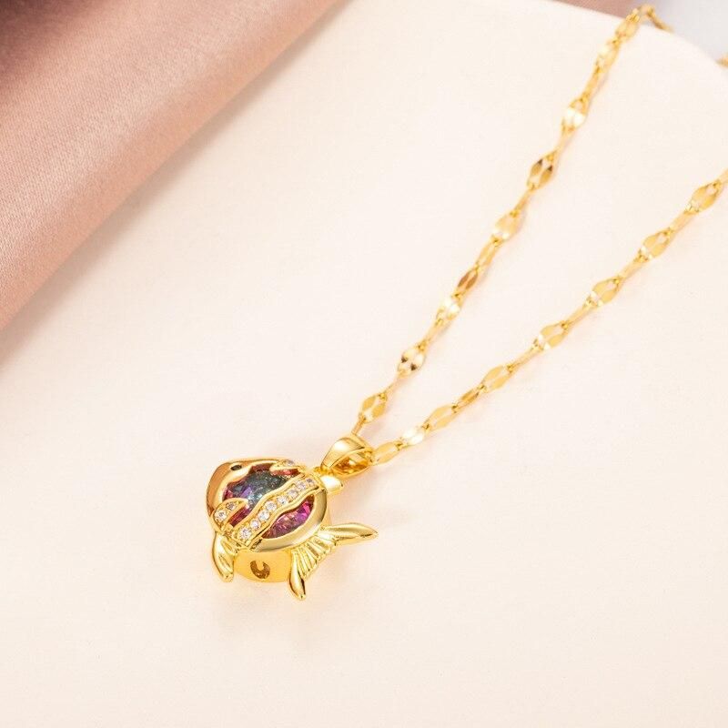 Buy Design Sense Colorful Zircon Crystal Gold Color Fish Pendant Stainless Steel Women Necklace Korean Ladies Clavicle Chain Jewelry in Nigeria