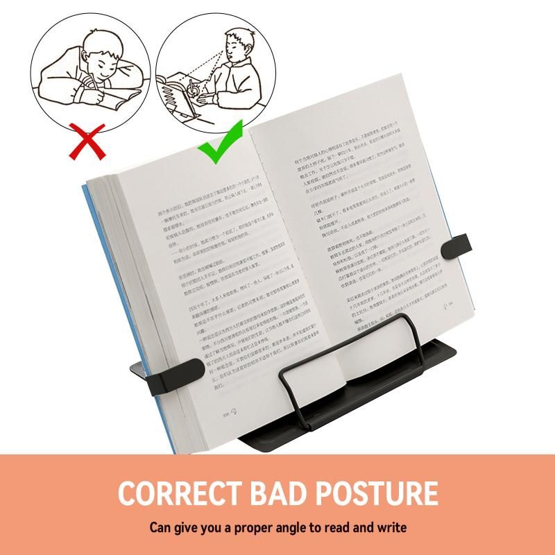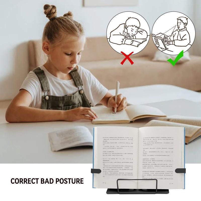 - The adjustable metal textbook stand to reduce head and neck strain; Children can effectively correct bad reading posture.