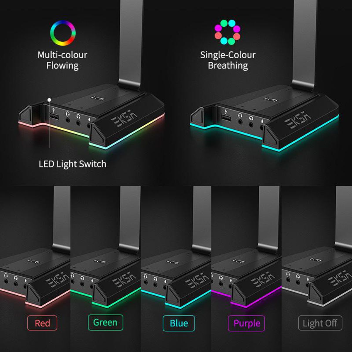 RGB GAMING HEADSET STAND: RGB Headset Stand Holder can provide 3 lighting modes, Multi-color Flowing mode, Multi-color Breathing mode and Static Lights Mode, to create a cool gaming atmosphere.