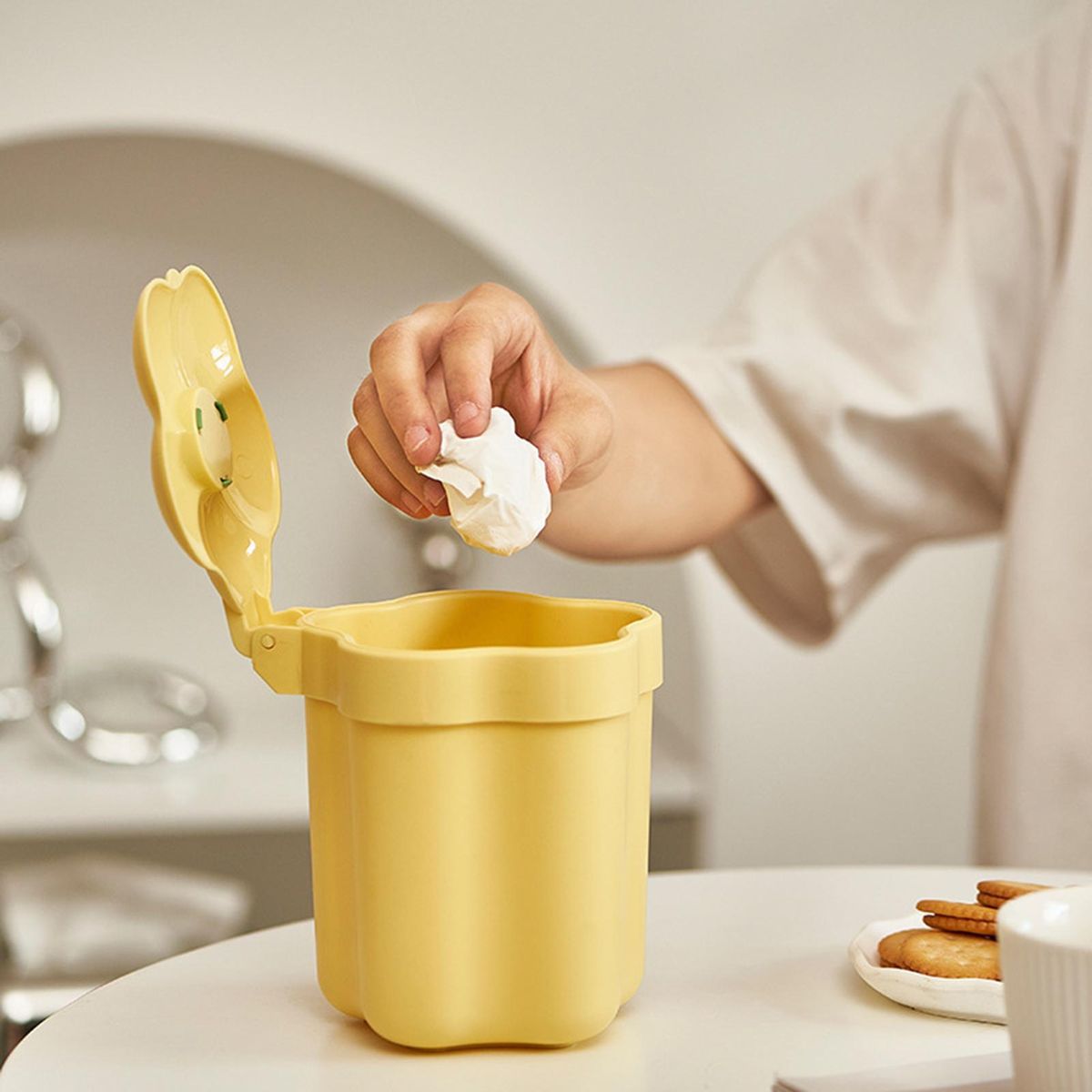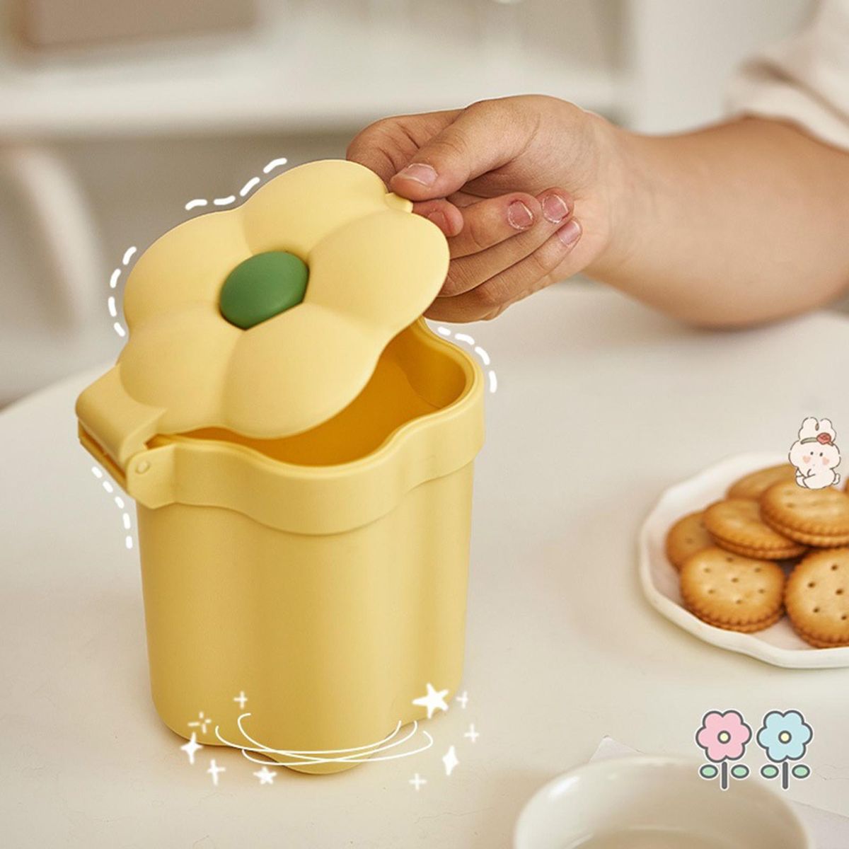 Compared to other similar products on the market, this flower-shaped trash bin can be placed on the desktop without occupying too much space owing to its mini, lightweight and compact size design.