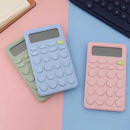 Power: Battery powered Material: ABS Display: Up to 8 digits Compatible battery: on battery Color: /Blue/Pink/Black/Green Size: about 8.3x14.3cm/3.27x5.63in Package includes: 1 pcs electronic calculator