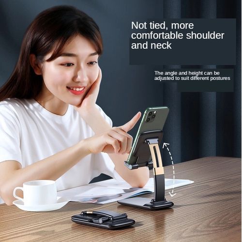 Fully Foldable Phone Holder Make Your Life Easier & Portable The mobile phone holder with foldable design, this iPad mobile phone tablet stand can be fold to mini body, easy for carrying, takes up very little space, convenient to carry it in any scene. It's a perfect companion for travel. Just pull out the kickstand on the back, then you can watch the downloaded movies on the plane. Owing it, your life will be more easier & portable.