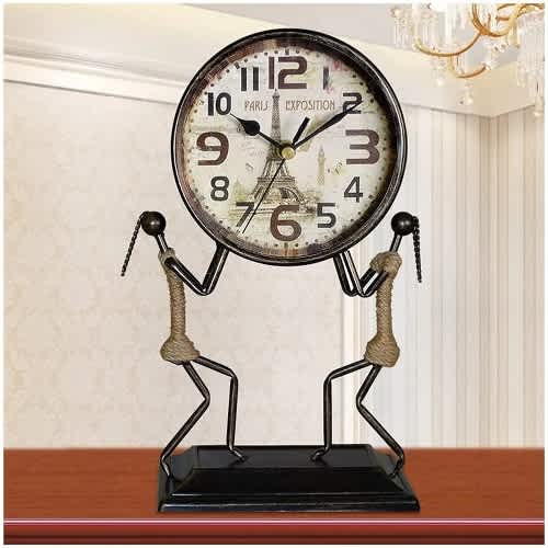 Product Highlight..Antique mute wrought iron clock, tabletop mute small ornaments, there are four different styles to choose from.Wild Fashion: Metal appearance, creative hemp rope design, fashionable shape, wherever it is placed, there is a beautiful landscape, used to dress up the living room, bedroom, study and other fashionable spaces.Fine workmanship: Metal appearance, smooth and delicate, retro clock dial and metal pointer, paper- coated clock dial, every detail is newly designed.Colorful Numbers: The Arabic numerals on the desk clock are colorfully designed, playful and lovable.Silent movement: adopts silent sweeping movement, stable and accurate time without sound, sharing fashion and practicality.
