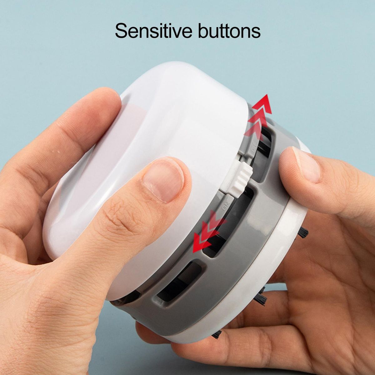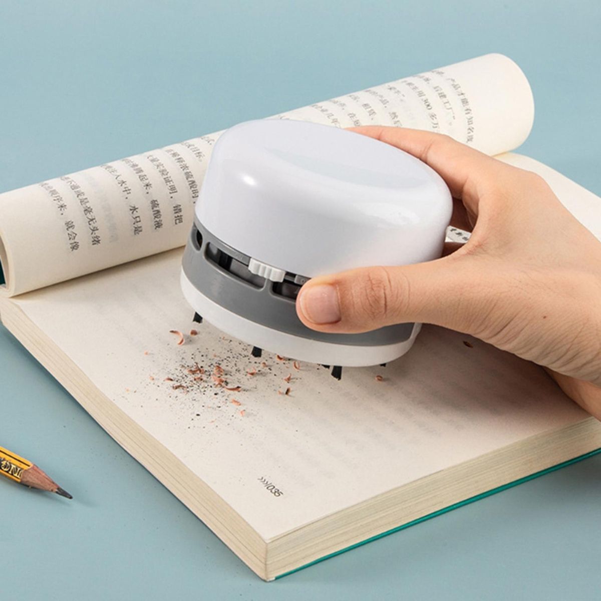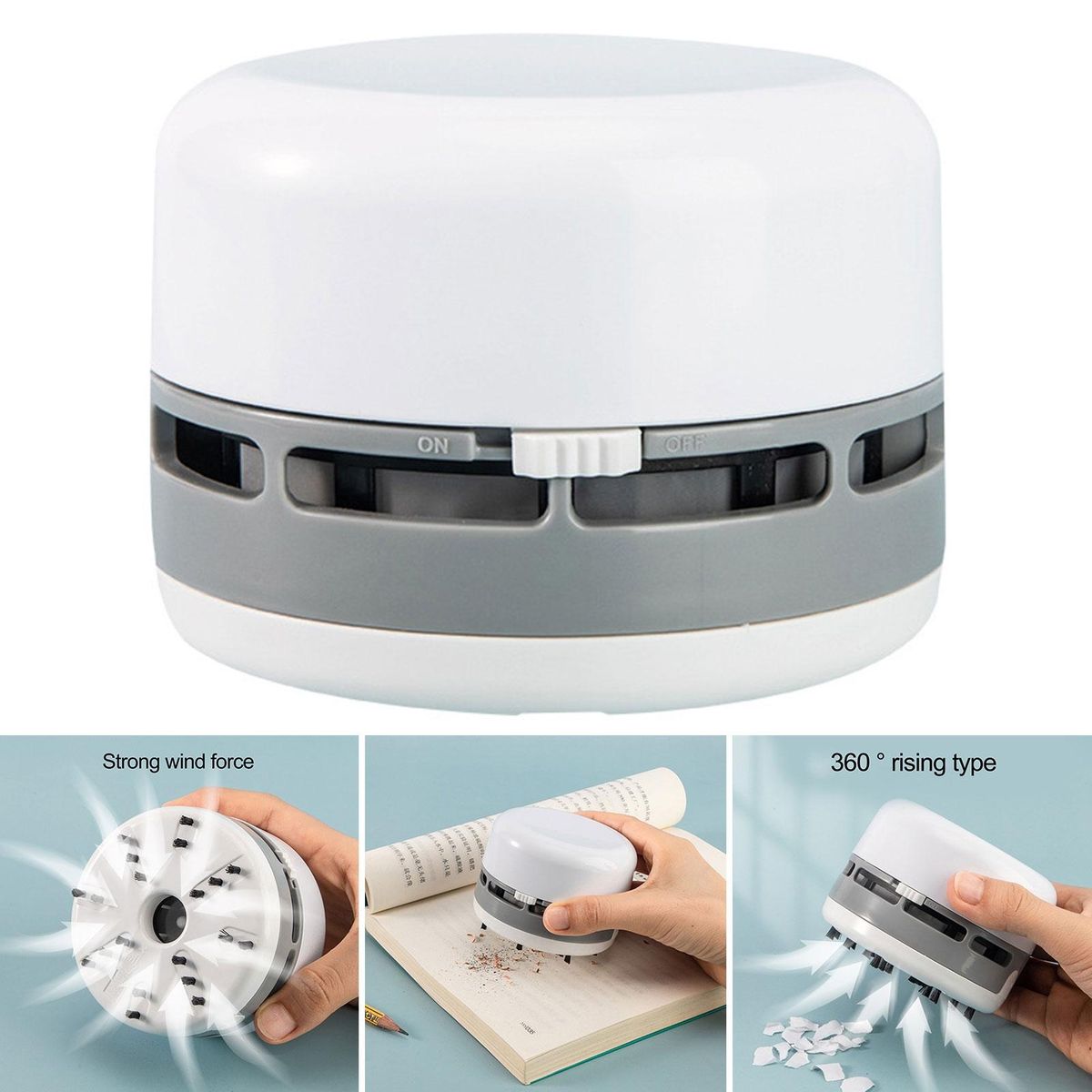 Featuring powerful suction and nylon bristles, this mini vacuum cleaner effectively cleans your desk of rubber, paper, snack andcrumbs.