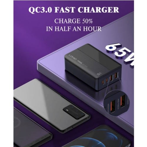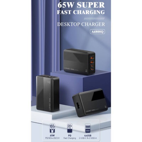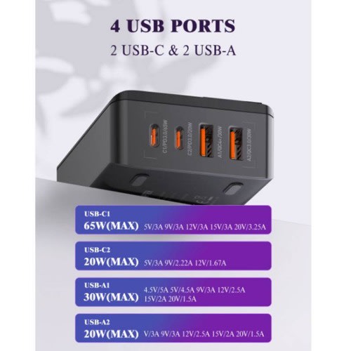 Buy Desktop Charger - 2 Pd Type-c & 2 Qc3.0 Output Ports - 65w - Black in Nigeria