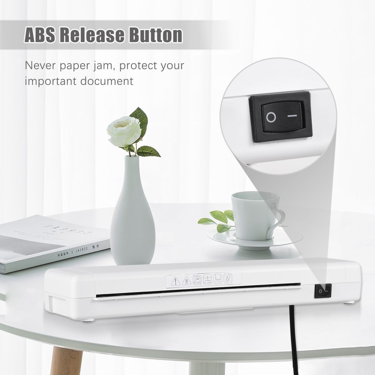 No More Paper Jam - ABS release button. When the jam is happening, just push the ABS button and pull out the paper. With an innovative operating system, which can bring you a quiet environment during work without noise.