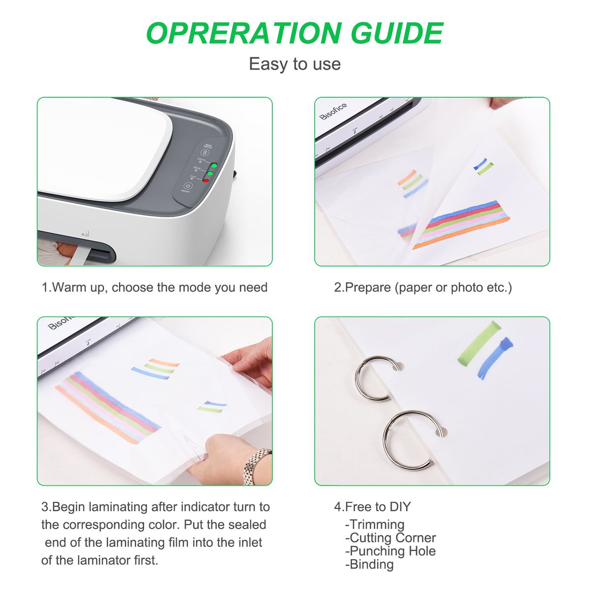 FAST LAMINATING SPEED: With impressive 1 minute heat-up time, and up to 370mm/min laminating speed, faster than most of the laminator in the market, highly promote your working efficiency.