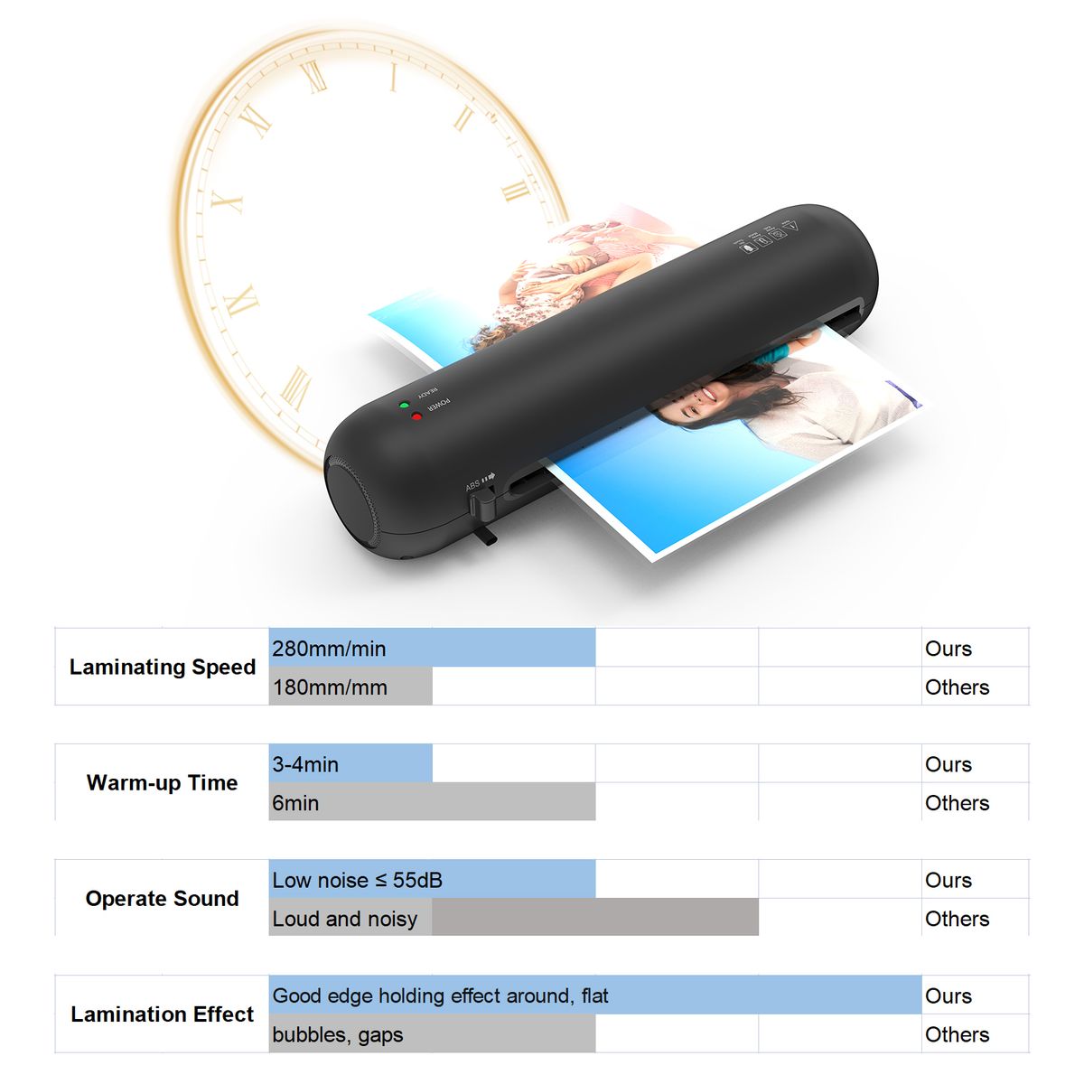 【Faster Heat up 】With impressive 3-4min heat-up time, remarkable 280mm/min laminating speed deliver an effective & efficient production.