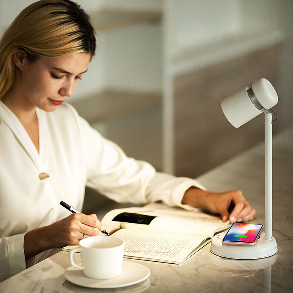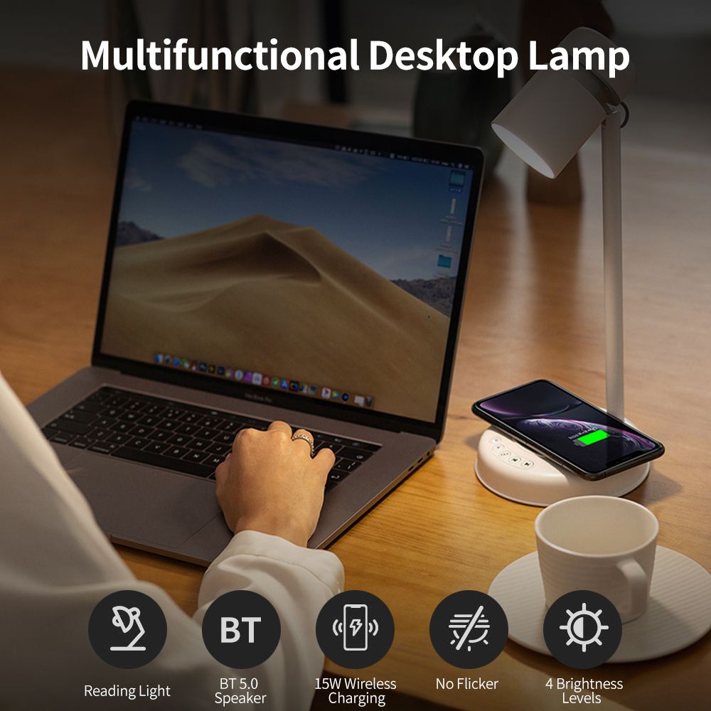 This Multifunctional Desktop Lamp offers one color temperature and 4 brightness levels and reduces visible flicker to protect your eyesight. Besides, it supports 15W wireless charging and can be use as a BT speaker, enjoying music wirelessly.
