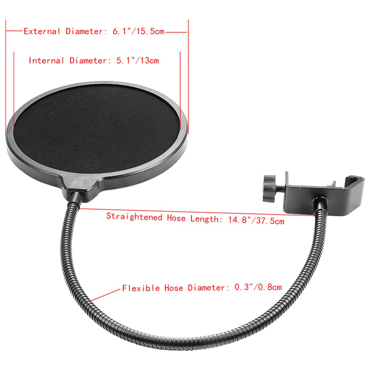 Pop Filter with double nylon net helps you with prevention against popping to get your best vocal recordings; Features flexible metal gooseneck and adjustable swivel mount