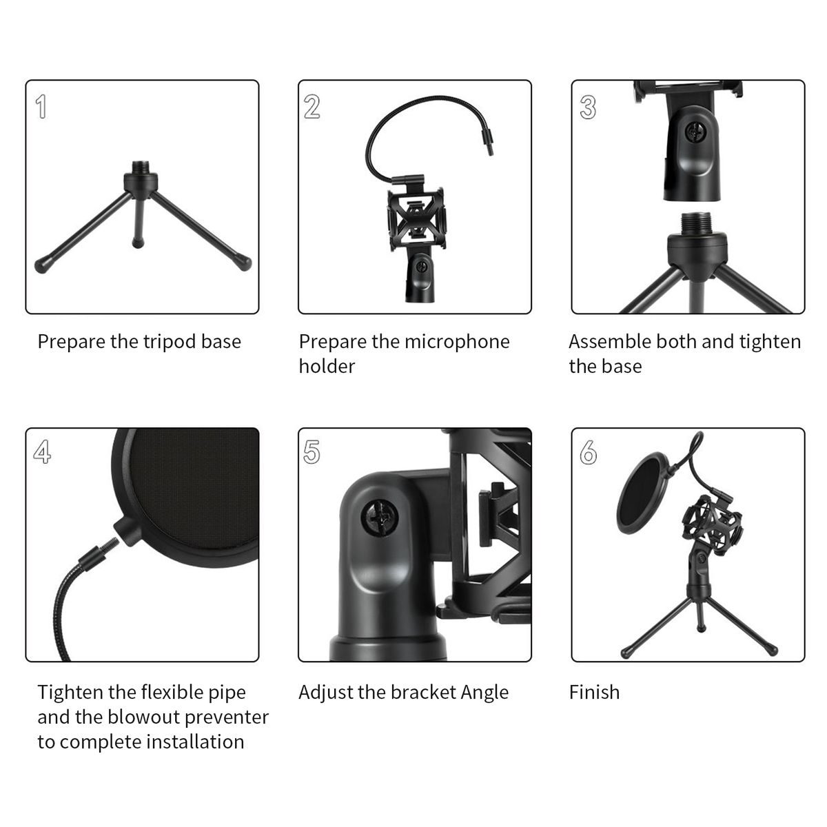 Features:The mic Stand adopts high quality ABS material, tough and durable, shockproof tripod makes the recording more real and clear.