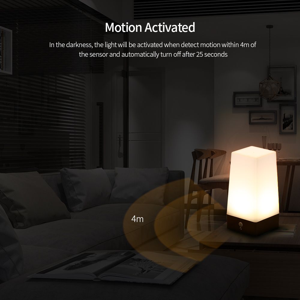 PIR Motion Sensor LED Lamp: desktop night light, suitable for anywhere, such as bathroom, living room, hallways, bedroom, kitchen, closets, etc.