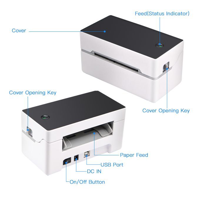 No paper bin design, the printing paper is placed outside the printer. No ink cartridge or ribbon required, low operation cost, thermal label paper is easy to buy.