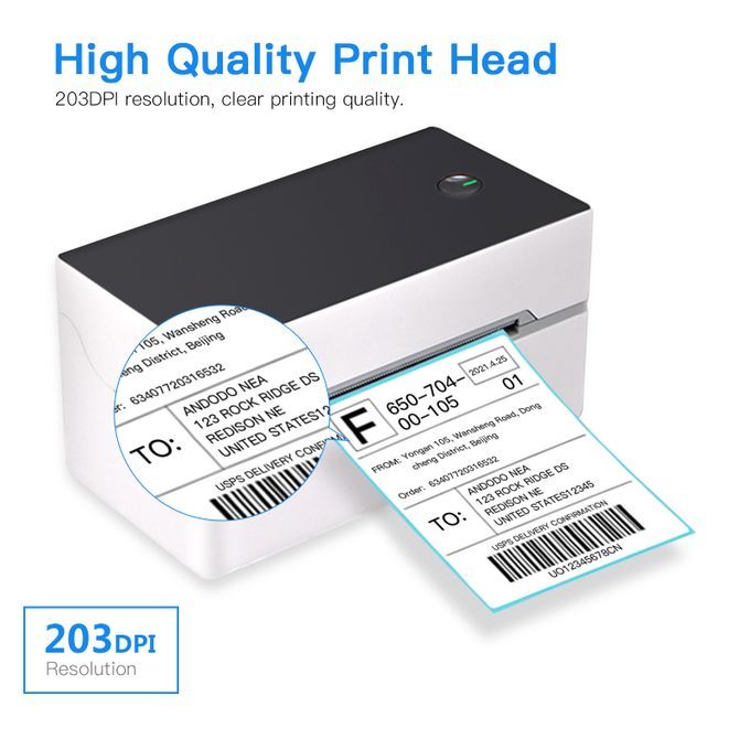 High quality print head, 203DPI resolution, clear printing quality and reliable performance, high speed printing, saving time, the speed can reach max. 150mm/s.