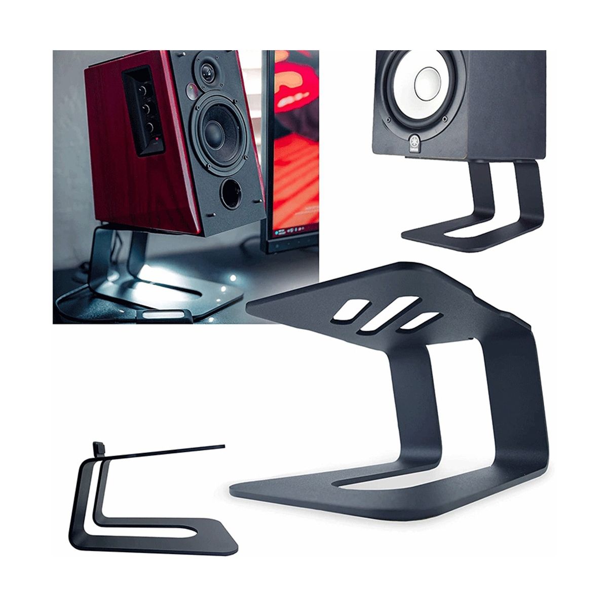 Desktop speaker stand tilts up slightly, provide you with a better listening experience avoid neck fatigue caused by long time bowing your head.