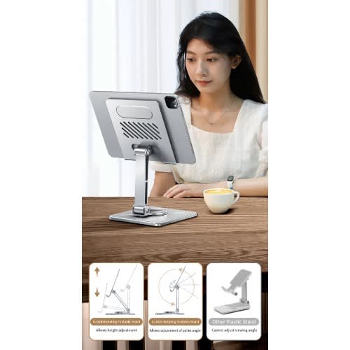 Buy Desktop Tablet Holder Foldable Rotating Desktop Stand - Silver in Nigeria