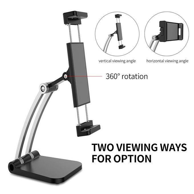 Desktop Tablet Stand 360 Degree Rotating Adjustable Phone Stand Live Streaming Holder for Phone/4inch to 13inch Tablet White