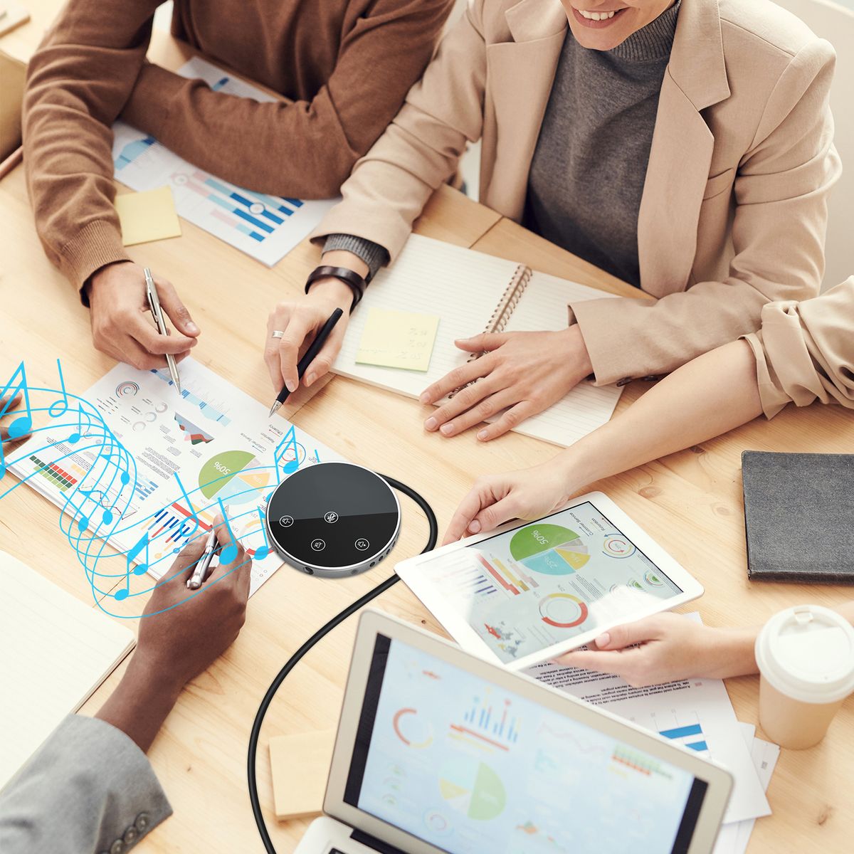 360°omnidirectional audio pickup microphone, 3 meters sound pickup distance. Advanced Noise-canceling Technology, clear and stable sound quality, instant communication with zero distance, high efficiency.