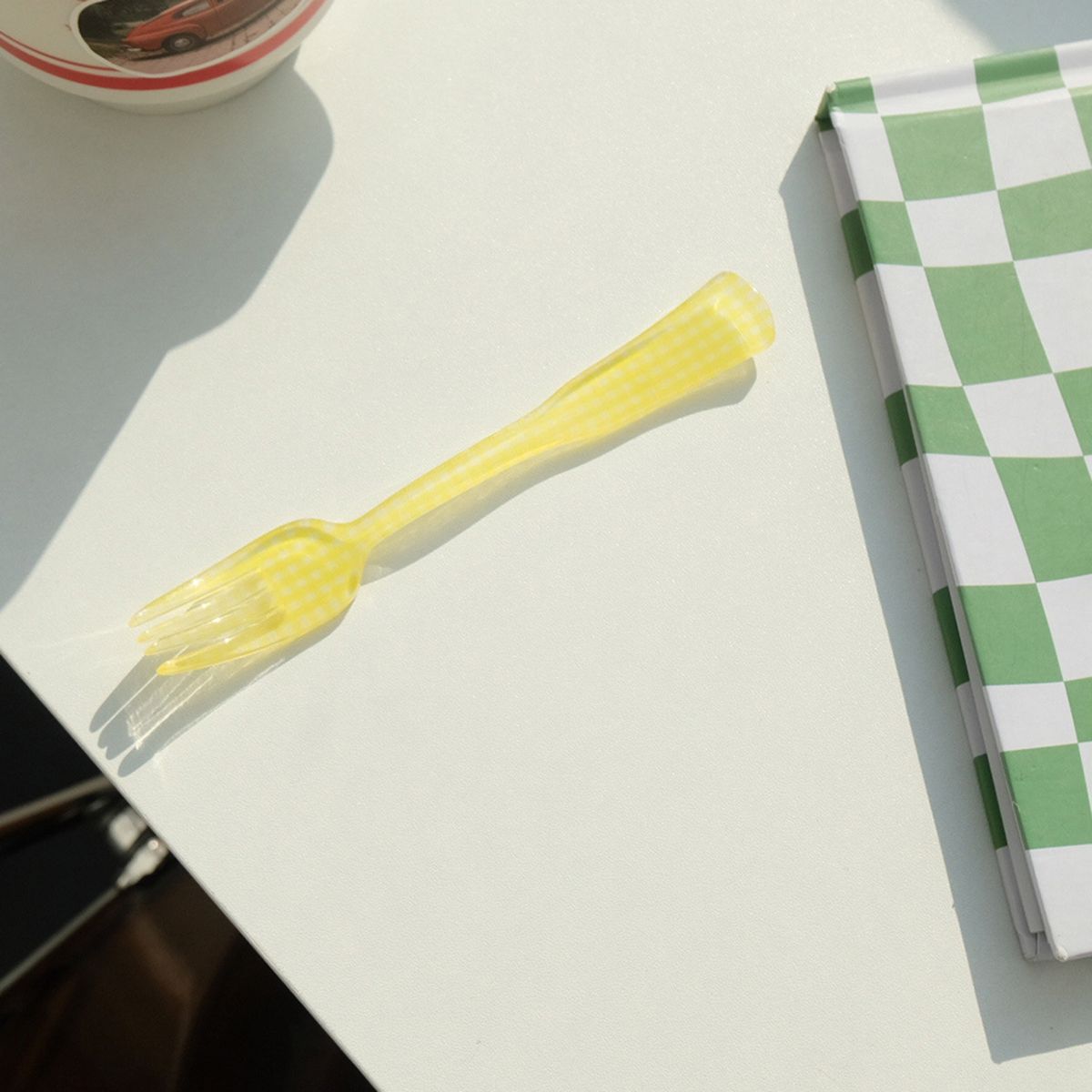 Designed with vivid colors and unique plaid patterns, this dessert spoon and fork can be easily matched with your cakes, cups and desserts while at a picnic. You can also use it to take beautiful photos.