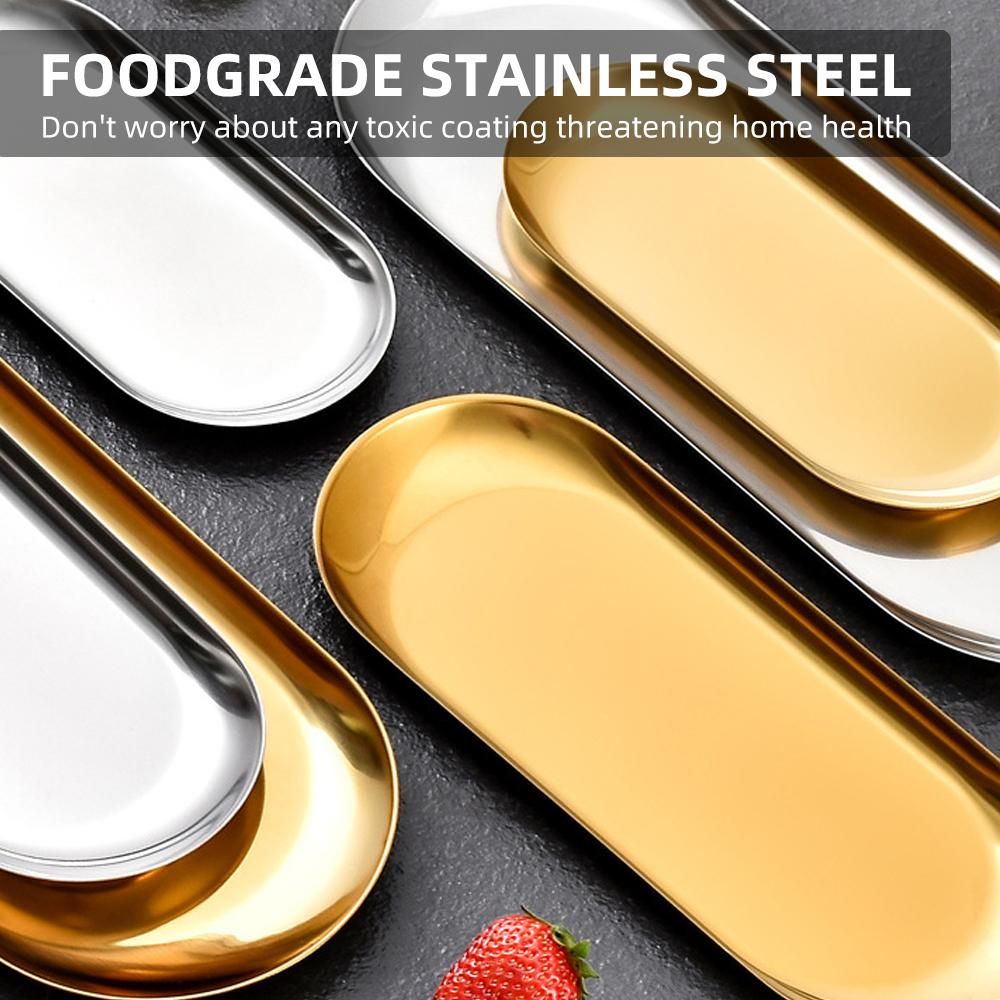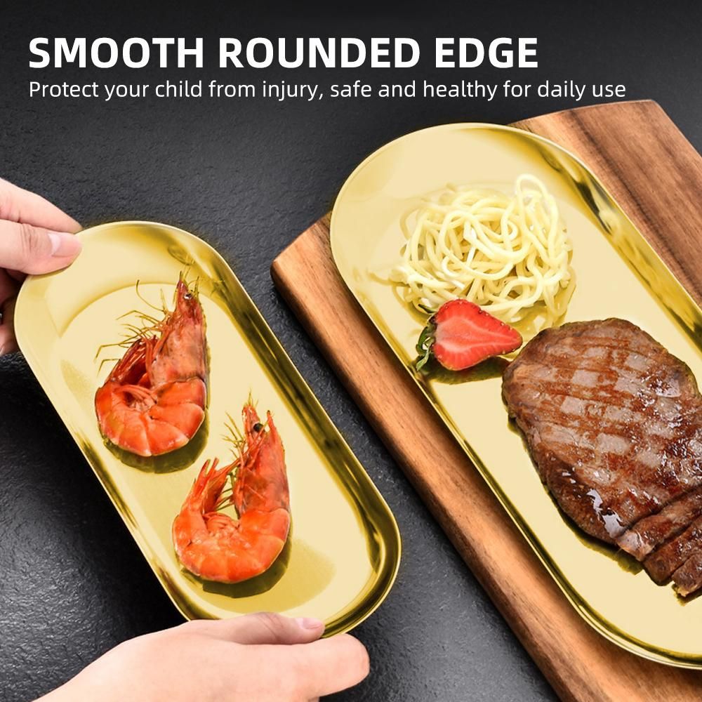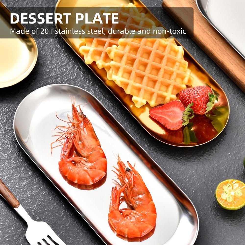 Buy Dessert Plate Dinner Plate Gold / Silver Stainless Steel Plate Multipurpose Steel Metal Ellipse Plate for Home Hotel Camping Outdoor Party in Nigeria