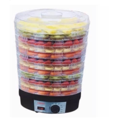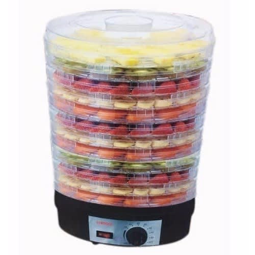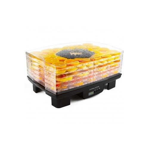 Multi-Tier Kitchen ApplianceDehydrates Food for Enhanced PreservationScientifically Tested to Increase Food Shelf LifeEasy, Single Button Operation and Nutritious ResultsFaster & More Efficient Alternative to Food DehydrationEffectively Dries Food by Removing Moisture ContentGreat for Food Storage: Drying Causes Food to ShrinkFood Reconstitution: Food Absorbs Water & Swells to initial SizeDehydration Retains up to 97% of Vitamins & MineralsHealthier Choice Alternative than Canning or FreezingYour Food Maintains Nutritional ValuePrepare Healthy Snacks for All AgesDries Your Food to Reduce SpoilageStain Resistant & Easy-to-CleanSimple One-Press Button OperationReaches Maximum Temperature of 180 & deg; F(5) Tier Trays for Enhanced Air-FlowHigh-Heat Circulation Travels Through Each TrayHeat Resistant and Dishwasher Safe TraysWorks with a Wide Variety of FoodsMeat, Fish, Poultry, Fruits, Vegetables and MoreUse for Meats to add in Stews, Soups, etc.Perfect for Making Oil-Free Veggie ChipsMake Home-Made Beef Jerky