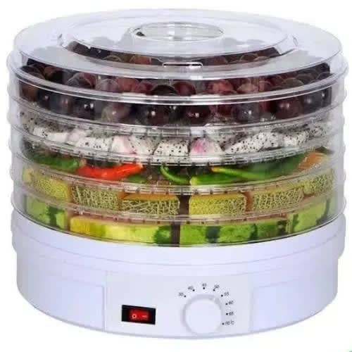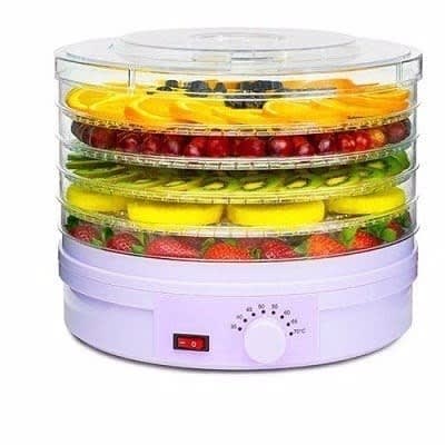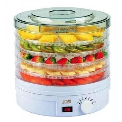 food dehydrator makes life easyfast easy way to make delicious, healthful and natural snacks like banana chips, fruit roll- up and beef jerky.5 detachtable trayspatented converge flow drying system eliminates tray rotation .adjustable thermostat lets different foods dry at the proper temperature.thermostat range of 35- 70 celciusopaque- vita save exterior helps block light , which can destroy the nutrient content of food.power- 350wvoltage 50/60hzfrequency- 20/ 240v