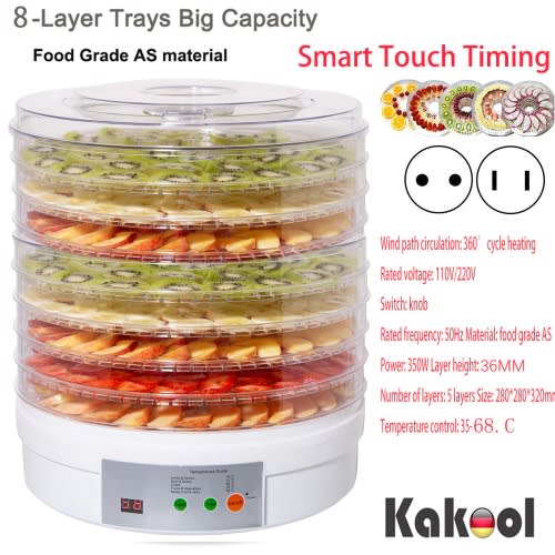 emperature design: dehydrator for food dehydration. Healthy and gentle storage. Simply place fruits, vegetables, meat, even flowers or pet food in the tray to set the temperature- Temperature adjustment: After turning the switch, just adjust the temperature from 35 to 70 degrees Celsius to use it as usual, and it is easy to use- LARGE SPACE: Upgraded 5-layer design, large space, save your time- APPLICABLE FOR ALL FOOD: Put vegetables and fruits in the physical dryer to live a healthy life suitable for breakfast, fat refilling, weight loss and more- EASY TO OPERATE: Simply place fruits, vegetables, and meat on the tray, set the temperature and heat up. Next, you can dry your food moisture while still trapping the flavor- power: 650w