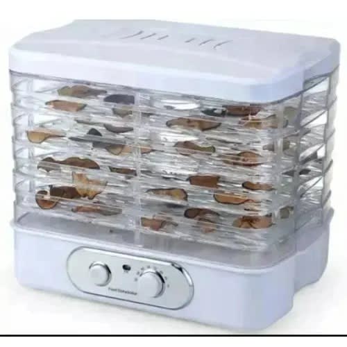 This Dehydrator includes 5 trays so you can create lots of tasty dehydrated foods at a fraction of the cost of commercial food dehydrators. Dries continuously for up to 36 hours. Digital temperatures settings provide accurate drying times and temperatures to make it super easy for you to start creating delicious dried foods. Make beef jerky and healthy dried fruit snack while saving tons of counter & pantry space. Features five nesting trays for a substantial reduction in storage space. We take the quality of our products seriously so you can be confident that you & rsquo;re receiving safe, efficient, high quality appliance.Material - ABS plastic,5 transparent plate,Drying dabervis accelerator,Temperatoris range of different products in order to regulate the temperature,Automatic switching functionPower - 350 watts.Temperature 35 - 70 & deg;