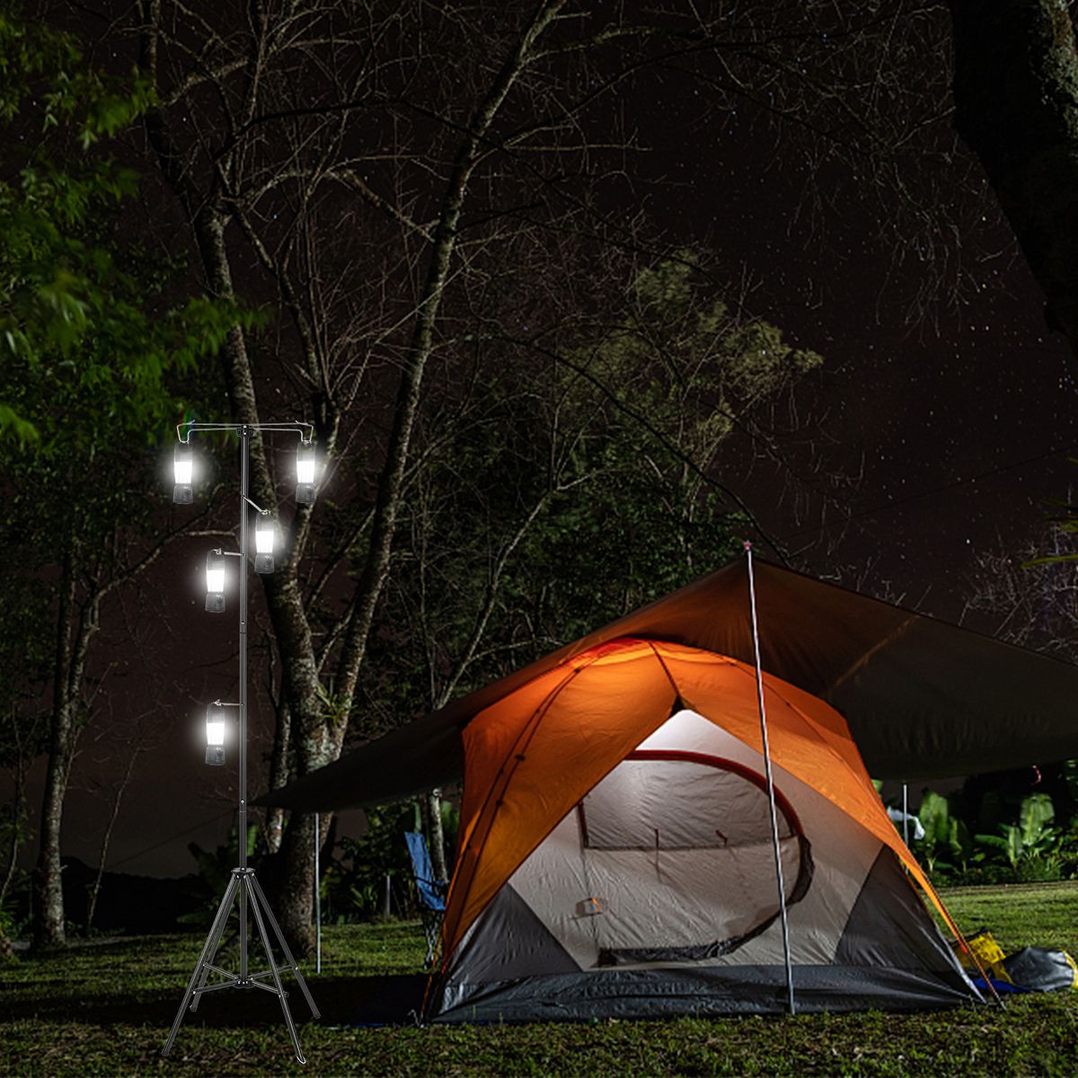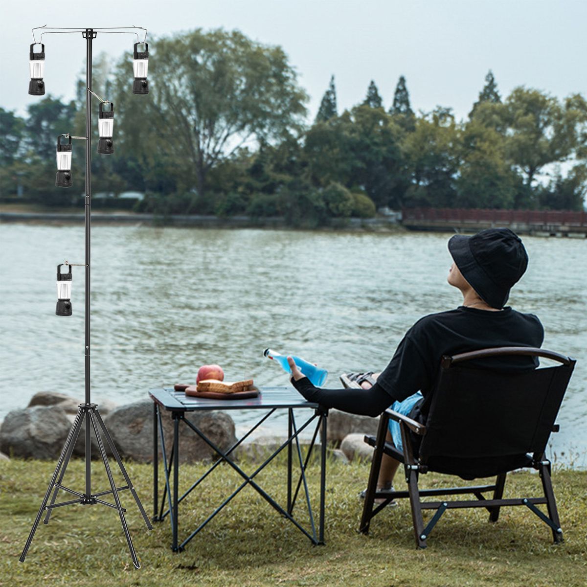It\'s convenient to carry this lamp holder out, folding design, won\'t take up much space, made of solid steel, lightweight for easy carrying.