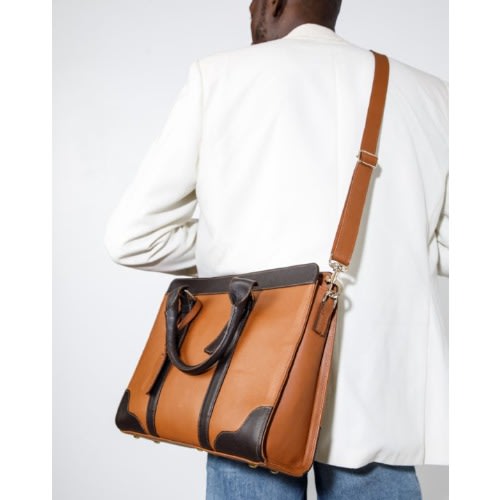 Buy Detail Africa Handcrafted Stripe Zusi Briefcase - Tan With Brown in Nigeria