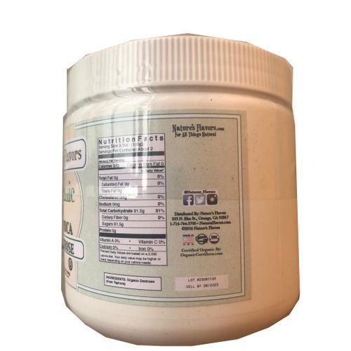 Nature's Flavors Organic Dextrose Powder is made from tapioca and is food grade, clean, and GMO-free. Useful in so many applications, Organic Dextrose Powder can be used in a variety of products ranging from brewing, to bottling, to puddings, sauces, and more. Nature's Flavors Organic Dextrose Powder is organic, vegan, kosher, and gluten-free.