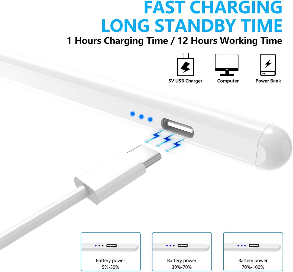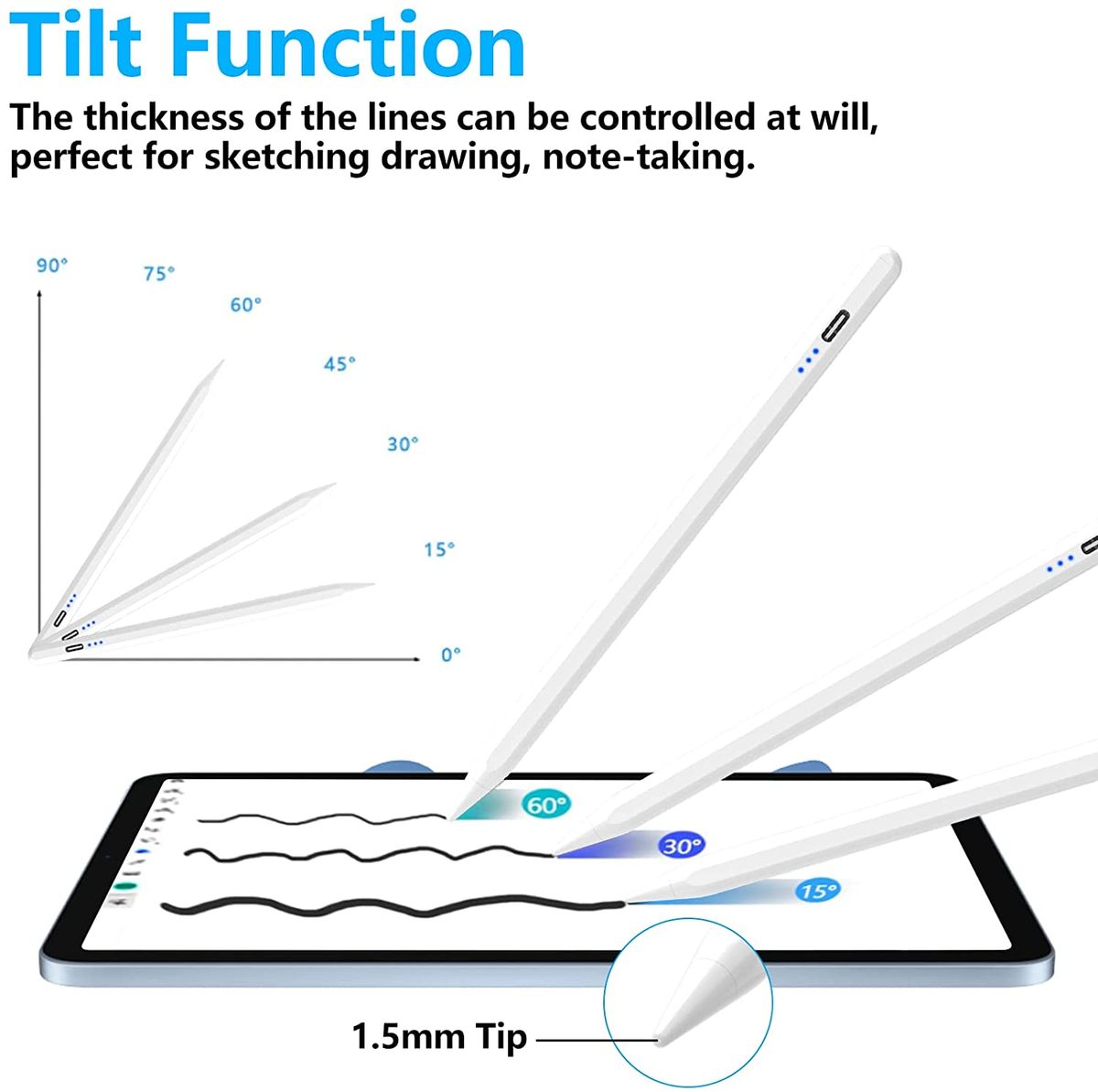 Stylus Pen for iPad, Palm Rejection Apple Pencil for iPad Pro 2021 11/12.9 Inch 2018-2022, iPad 9th Gen, iPad 6/7/8th Gen, iPad Air 3/4/5, Upgraded Tilt Sensitivity ic Stylus Apple Pen, WhitePlease confirm whether your devices are compatible with our iPad pencil before you place orders. Compatible Models: iPad ONLY (2018 to 2022), including iPad 9th gen, iPad mini 6th gen, iPad 6/7/8th Gen, iPad Mini 5th Gen, iPad Air 3rd/4th/5th, iPad Pro 11 Inch 1st/2nd/3rd Gen and iPad Pro 12.9 Inch 3rd/4th/5th Gen . 【Not Compatible with iPad Pro 12.9'' 1/2 Gen and any Other Models, iPhone, Android or Microsoft devices.】Tilt Sensitivity: This Apple pen is designed to work like a regular pencil, so if you hold it at an angle of the tip alongside the iPad for something like shading, it works. Depending on how the tilt angle is placed on the iPad while writing or drawing, a line can be thicker or thinner with this stylus pen for iPad.Palm Rejection and ically Attach: With the palm rejection function, your iPad only recognizes the stylus pen tip and not your hand or finger, allowing you to write or sketch comfortably. And it features a flat edge that attaches ically to your iPad.High Sensitivity and Pixel-Perfect Precision: With the upgraded pen tip, it is more durable and delivers pixel-perfect precision and industry-leading low latency, making it great for drawing, sketching, coloring, taking notes, marking up PDFs, and more. You can turn iPad into your notepad, canvas, or just about anything else you can imagine. And it is designed to have a pencil-like feel in the hand, and it is weighted to feel like a real writing instrument.Low Power Consumption and Double-Tap Switching: It only takes 60-80 minutes to fully charge your stylus pencil and it can work for 20 hours continuously. It will automatically turn off after being idle for 5 minutes. Just double-tap the top of the stylus and the pencil is activated again. This double-tap turn on/off design is to avoid mistouching the top of the stylus pencil for iPad when in use. Very convenient and practical.