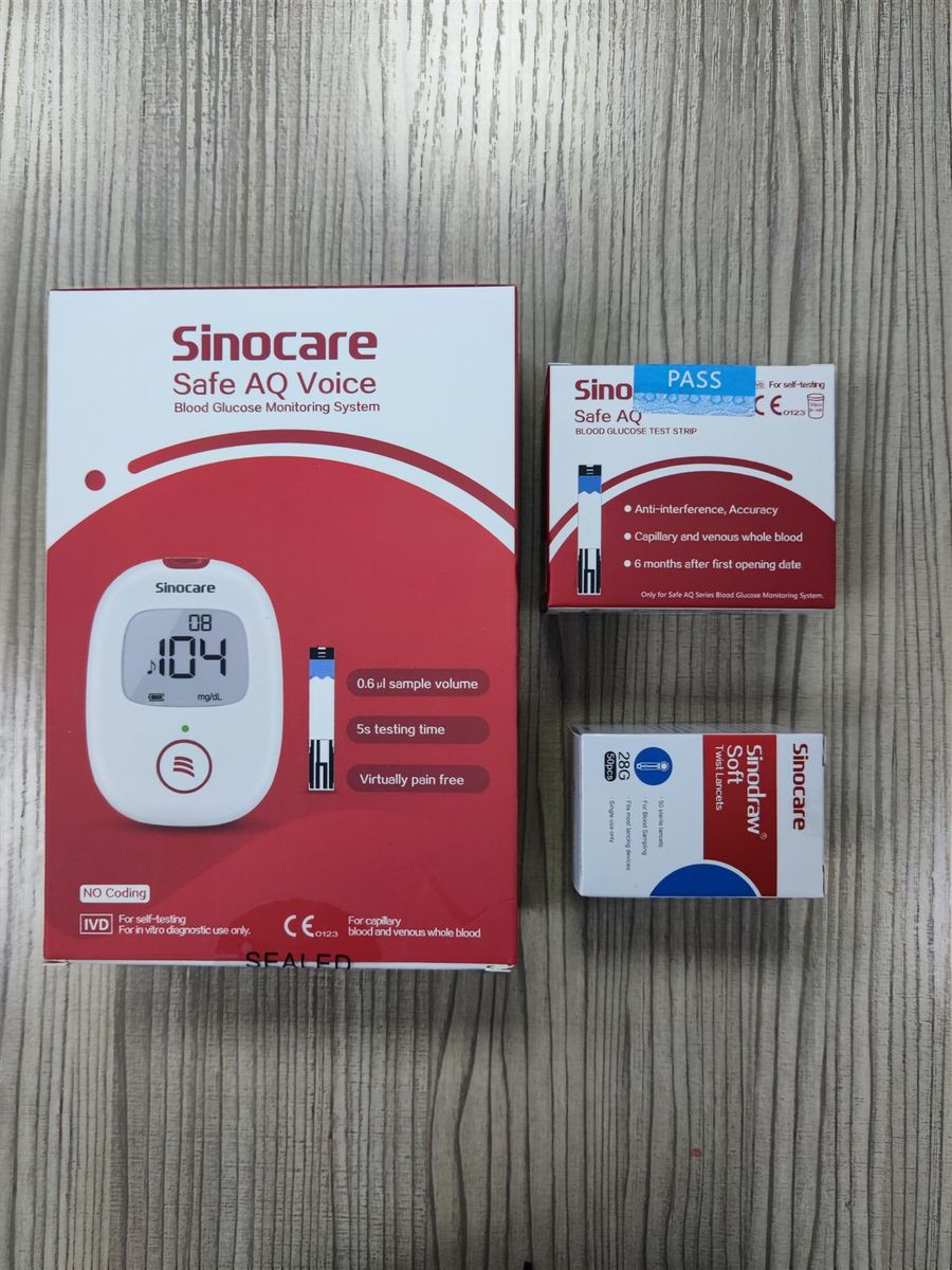 Product DescriptionBenefits and Features- Blood Glucose Testing Kit: This kit covers Sinocare blood glucose monitor Safe AQ Voice & Strips & Lancets & Pain-free lancing device & Case and user manual. A set of equipment is provided to meet all your needs when measuring blood glucose.