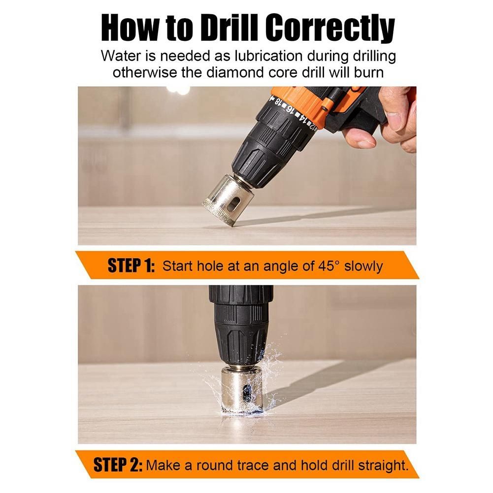 Diamond hole saw drill bit set kit are used to drill Glass, Porcelain, Ceramic, Marble, Granite Stone, Bottles, Pots.