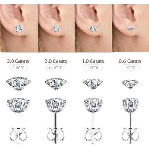 - INNOVATIVE TECHNOLOGY: Each diamond is cut using exceptional cutting techniques, and only a perfectly mathematically proportioned cut can reflect extremely bright light. It took many experiments and explorations to ensure the perfect symmetry of the diamond's cut, Let every woman have diamonds. Sterling silver Well made mountings with secure backs, shiny and hypoallergenic.