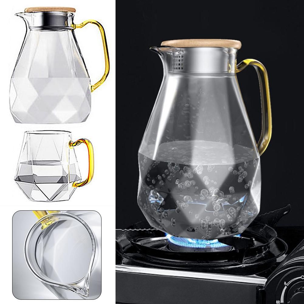 1X Diamond GlTea Set Teapot Hot Cold Water Jug Transparent Coffee Pot Kettle Water Bottle Jar Carafe Heat-resistant Teapot Set