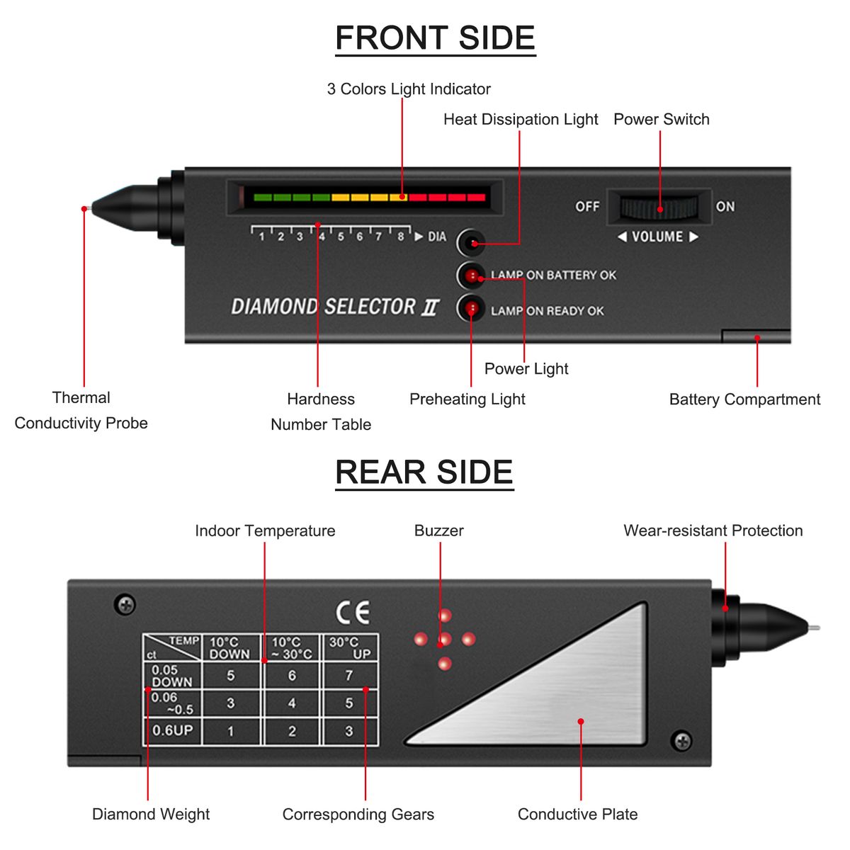 Note:1.The thermal conductivity meter is an electronic instrument specially designed and manufactured according to the thermal conductivity of diamonds for identifying the authenticity of diamonds;