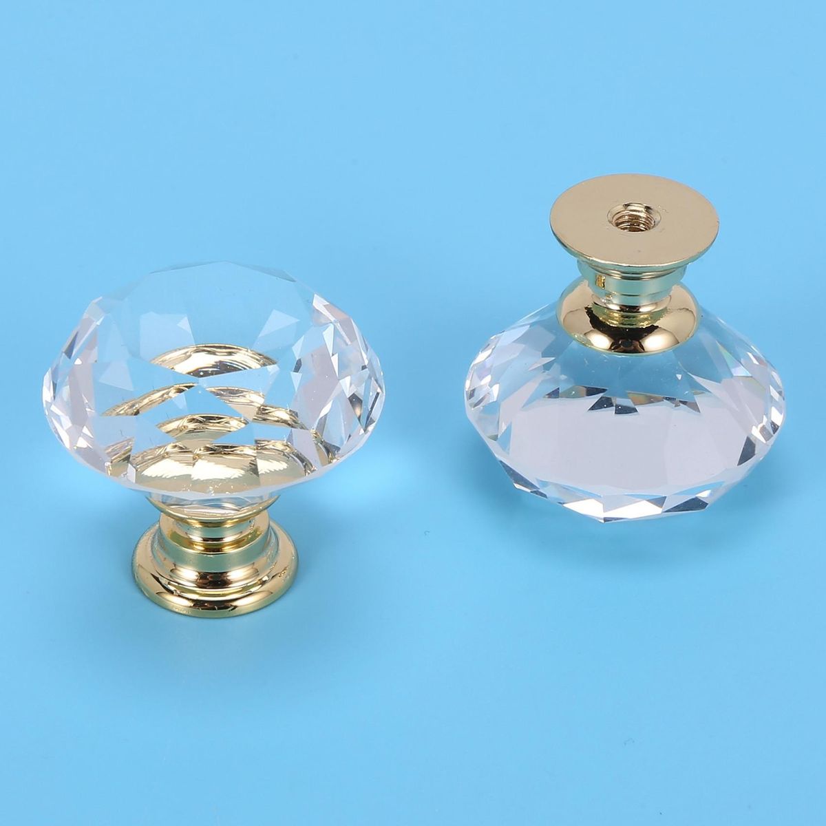The knob is clear cut crystal glass and alloy base, shiny polished chrome, glittering and sparking, diamond shape, good decoration for your home or office