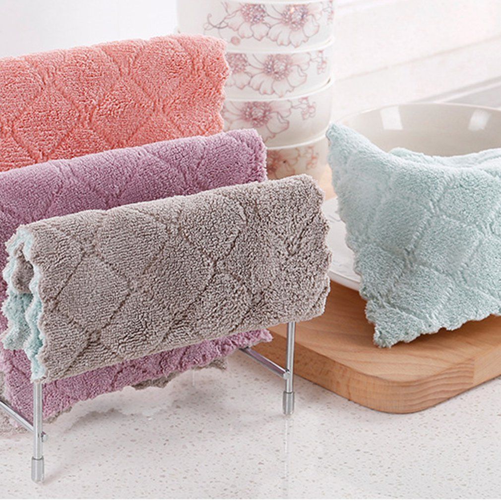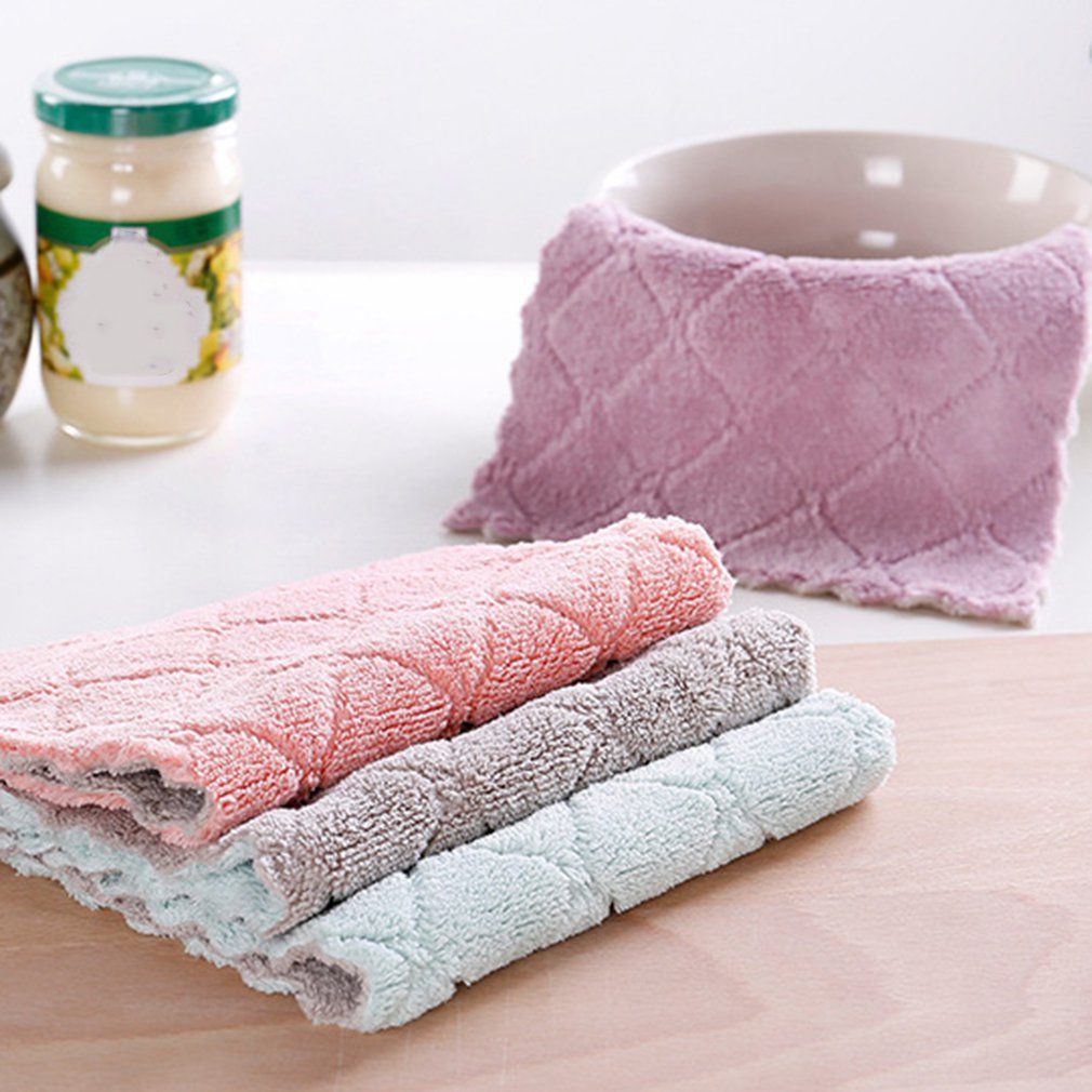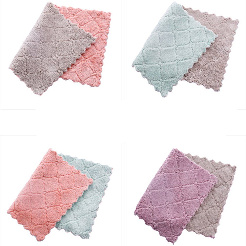 Diamond Shape Water Absorption Eco-friendly Rags Dishcloth Washing Cloth-pink + green/Variation-