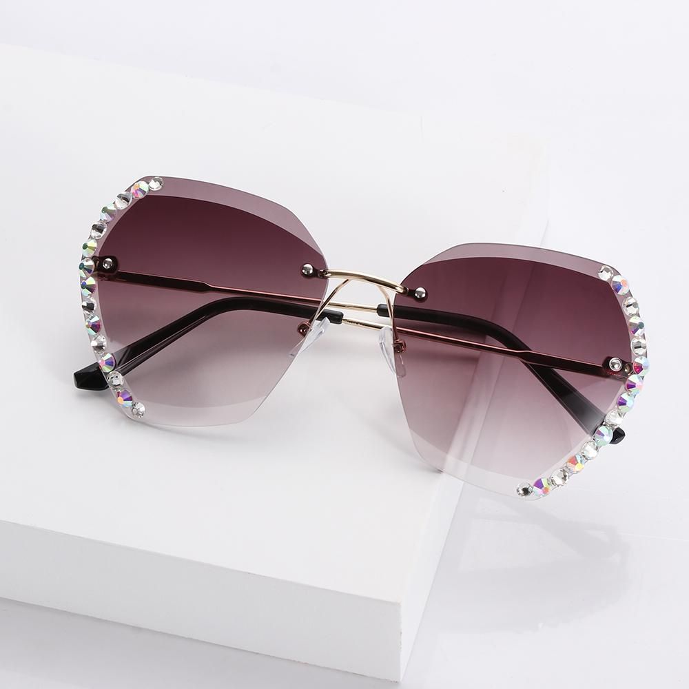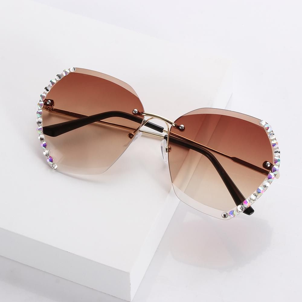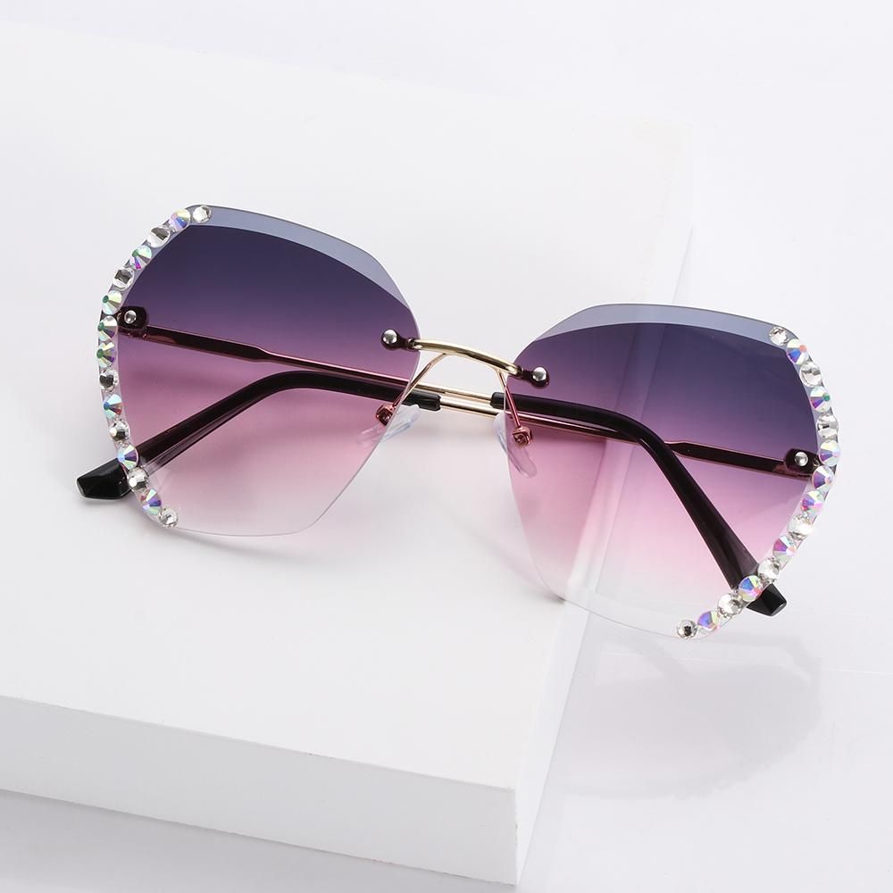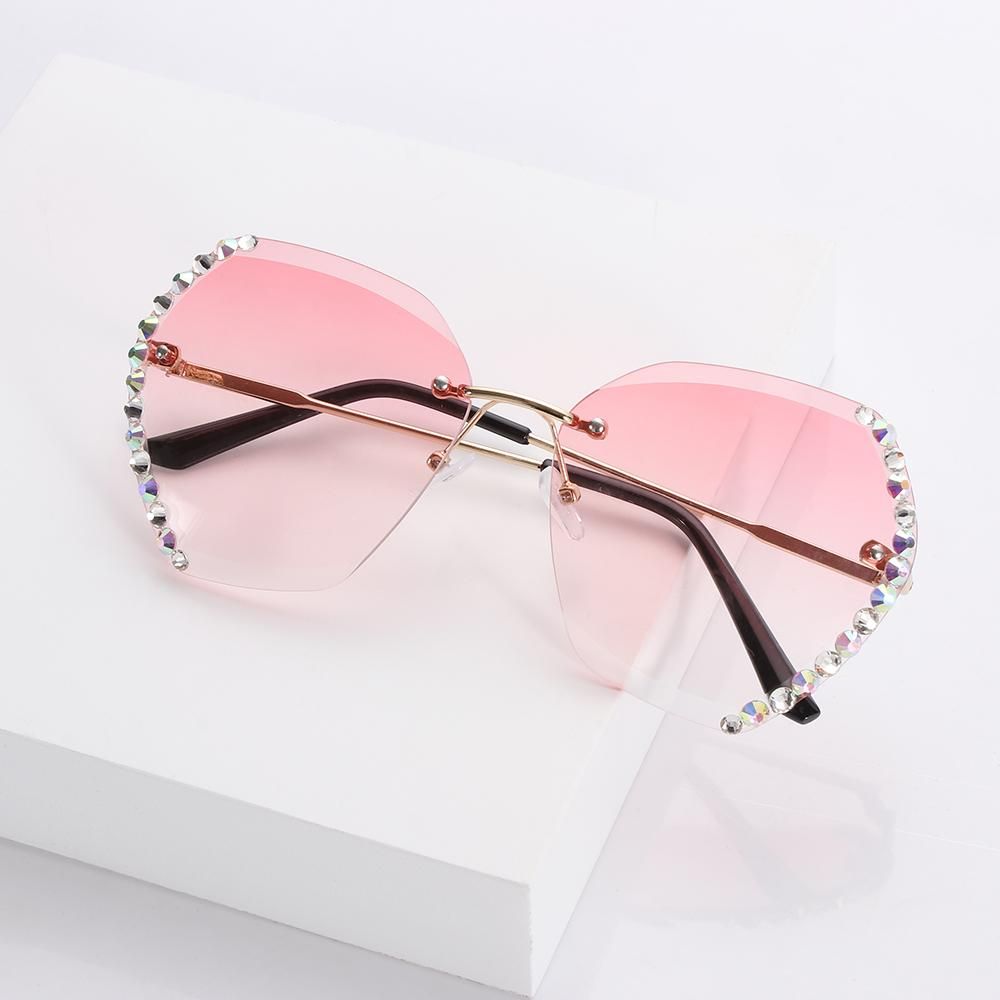 Diamond Square Rimless Sunglasses Retro Oversized Gradient Sun Glasses Unisex Summer Shades UV400 Eyewear Fashion Accessories