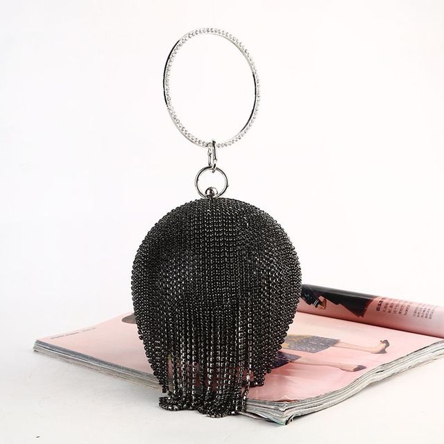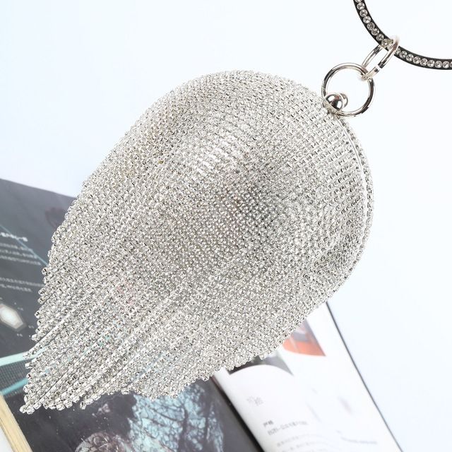 Diamond Tassel Women Party Metal Crystal Clutches Evening Bags Wedding Bag Bridal Shoulder Handbag(Silver Crystal Bag)