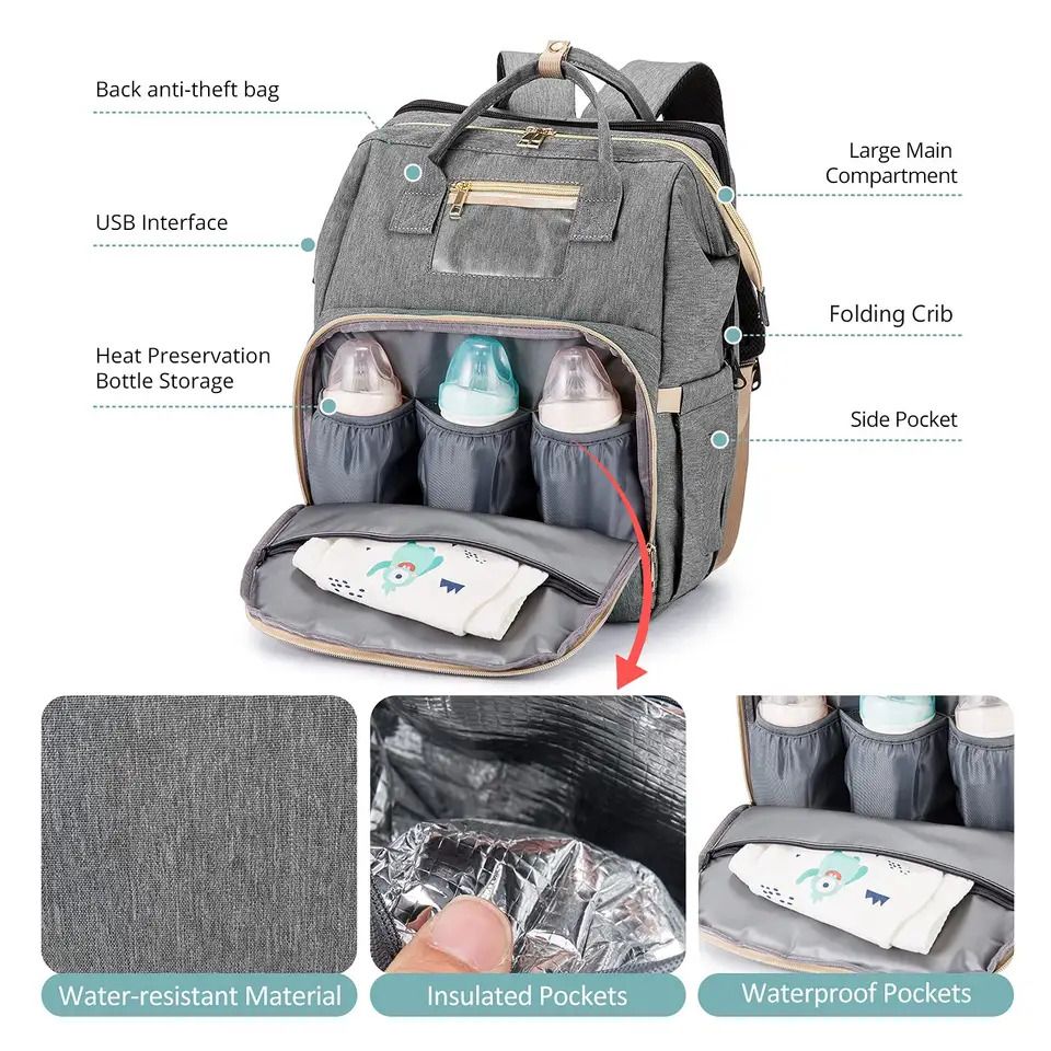 - LARGE CAPACITY DIAPER BAG - diaper bag has separate storage pockets, you can take in the milk bottle, water bottle, baby clothes, baby diapers, towels and so on in different separate pockets.