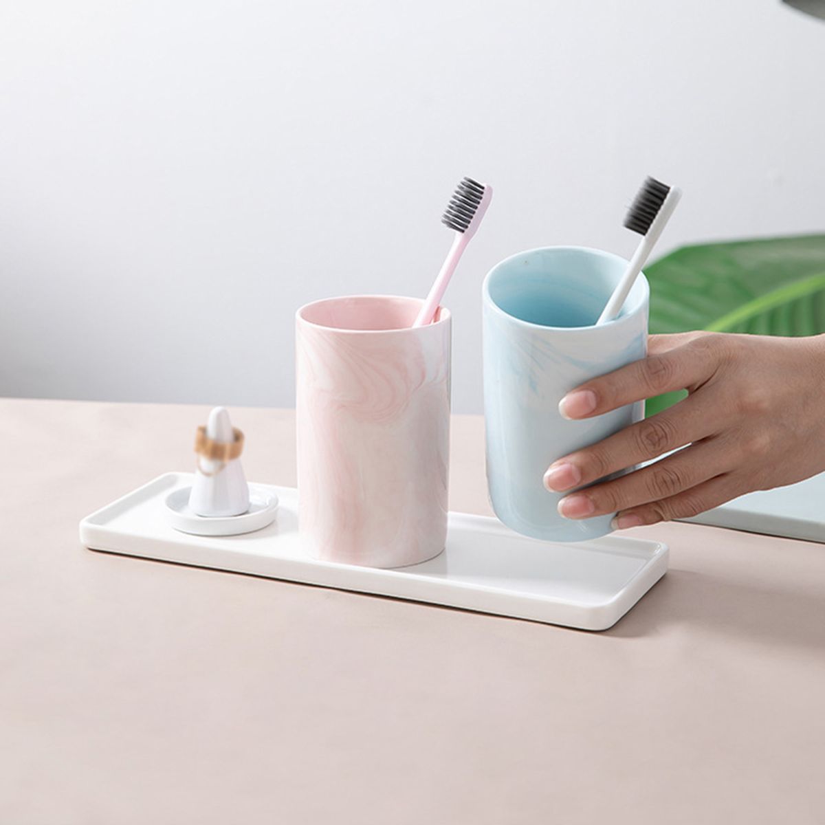 Place tooth mug and toothbrush, toothpaste, liquid soap, etc. in the bathroom.