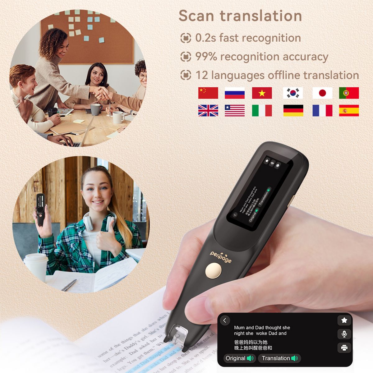 Multifunctional Tools - Free to connect the translator to the Peripage App in your mobile phone and print the contents via Peripage A40 / A6/ A2 printer; You can download the audio file in the pen for listening training. The scanner pen help students to solve reading difficulties, such as dyslexia and people who are unwilling to read. Comes with reversed scanning direction setting, great caring for the lefty.