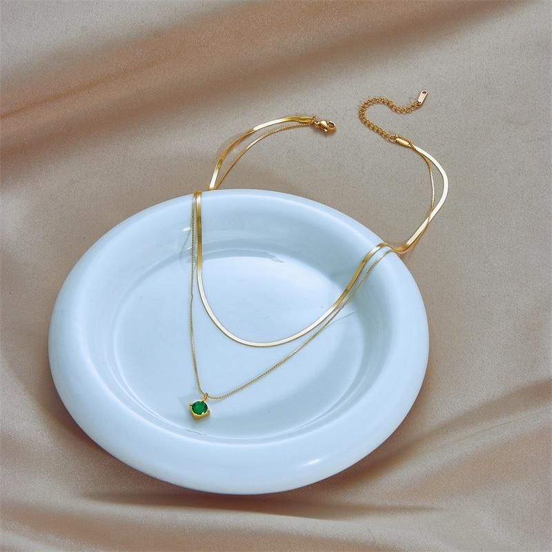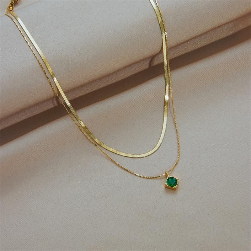 Buy DIEYURO 316L Stainless Steel Green Zircon Pendant Necklace For Women Fashion Luxury Gold Color 2in1 Chain Girl Neck Jewelry Gift in Nigeria