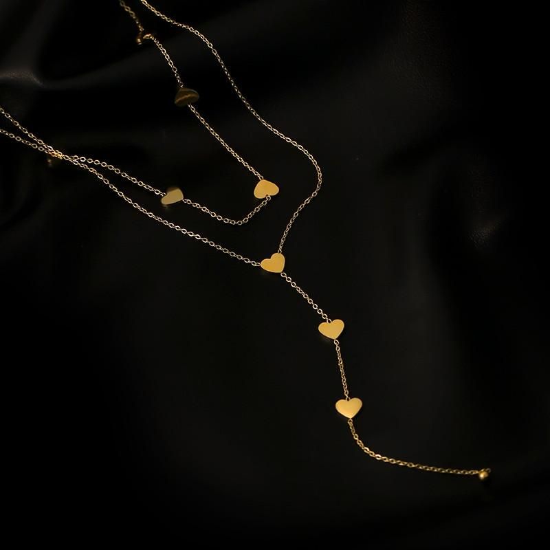 Buy DIEYURO 316L Stainless Steel Love Heart Tassel Long Necklace 2 Layers Beautiful Clavicle Chain Exquisite Gorgeous Women Wedding in Nigeria