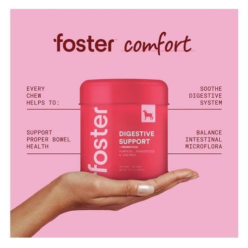 Foster™ wellness products are specifically created to support pet wellness throughout life. Made in the USA with globally sourced wholesome ingredients you can trust, Foster™ wellness chews are formulated with vets and made with our highest standards. No corn, wheat, or soy. Help your dog have a balanced belly with Foster™ Digestive Support wellness chews.