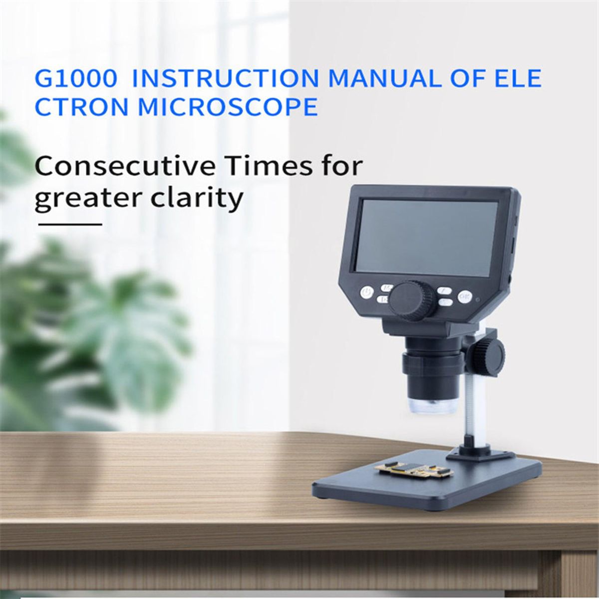 Pixels: 10 million pixelsDisplay: 4.3 inch LCD displayMagnification: 1-1000 times magnificationObject distance: 10MM to infiniteAngle adjustable bracket diameter: 33mmResolution setting: FHDPicture quality: 1M 2M 3M 5M 6M 8M 10MCyclic video recording: 3min 5min 10minWhite Balance: Auto Daylight Cloudy Tungsten FluorescentExposure compensation: 2+ 1+ 0 -1 -2Automatic shutdown: off 3min 5min 10minREST key, system restores button