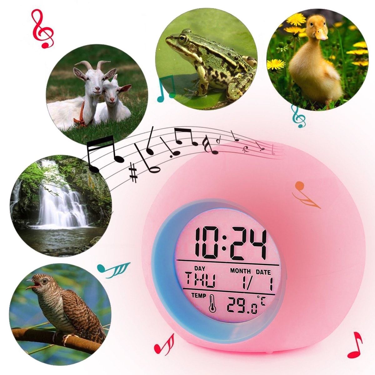 Buy Digital Alarm Clock, 7 Color Night Light, Snooze, Temperature Detect for Kids, Boys and Girls Sleep Timer LED Display, 5 Ringing Tones Options (Blue) in Nigeria