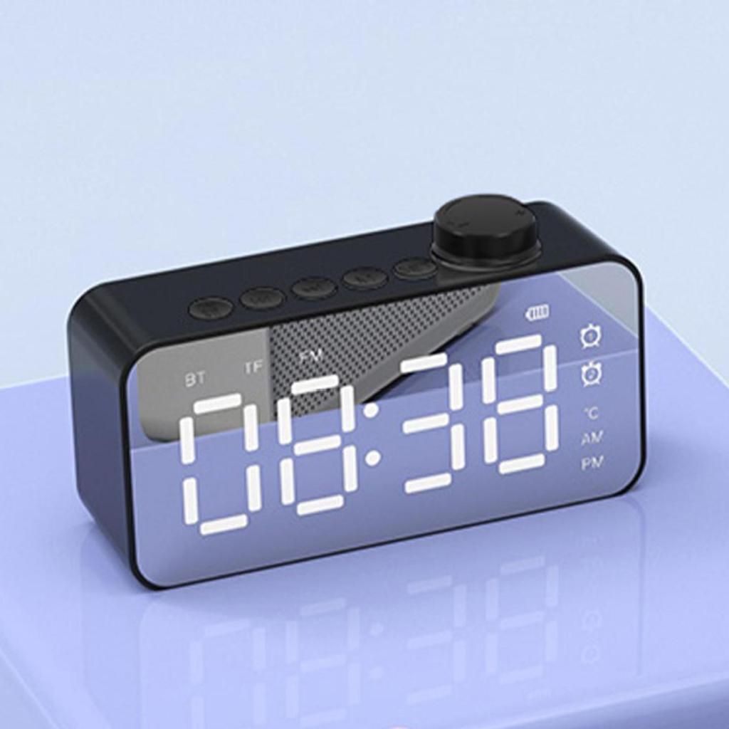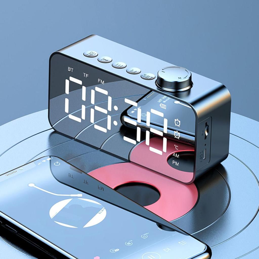 Multifunctional smart Bluetooth alarm clock speaker, support Bluetooth 5. 0 and TF cards.Built-in mic for clear hands-free calling, convenient and practical.Dual alarm clock, LED mirror display screen, three-level brightness adjustment.Tuning FM radio, let you enjoy FM music or news station.Temperature sensor, powerful bass, stereo sound, make your life better.